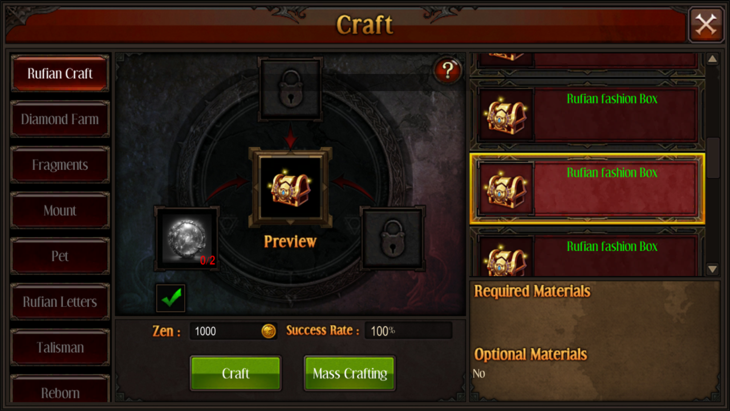 Each fashion when sold with the **-SELL- button** will give a fragment that will be used to create **Rufian Fashion box (Craft - Rufian Craft)**&#x20;